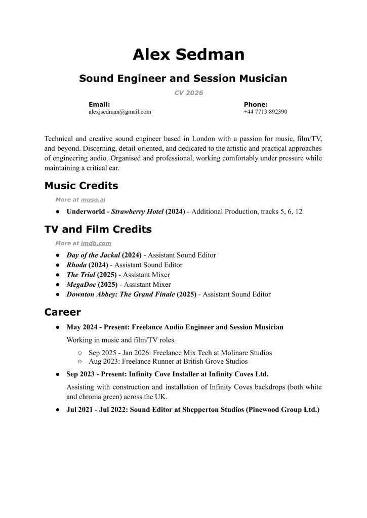 Alex Sedman - Audio Engineering