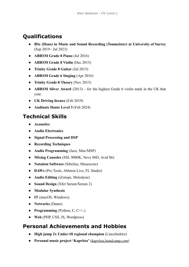 Alex Sedman – Audio Engineering